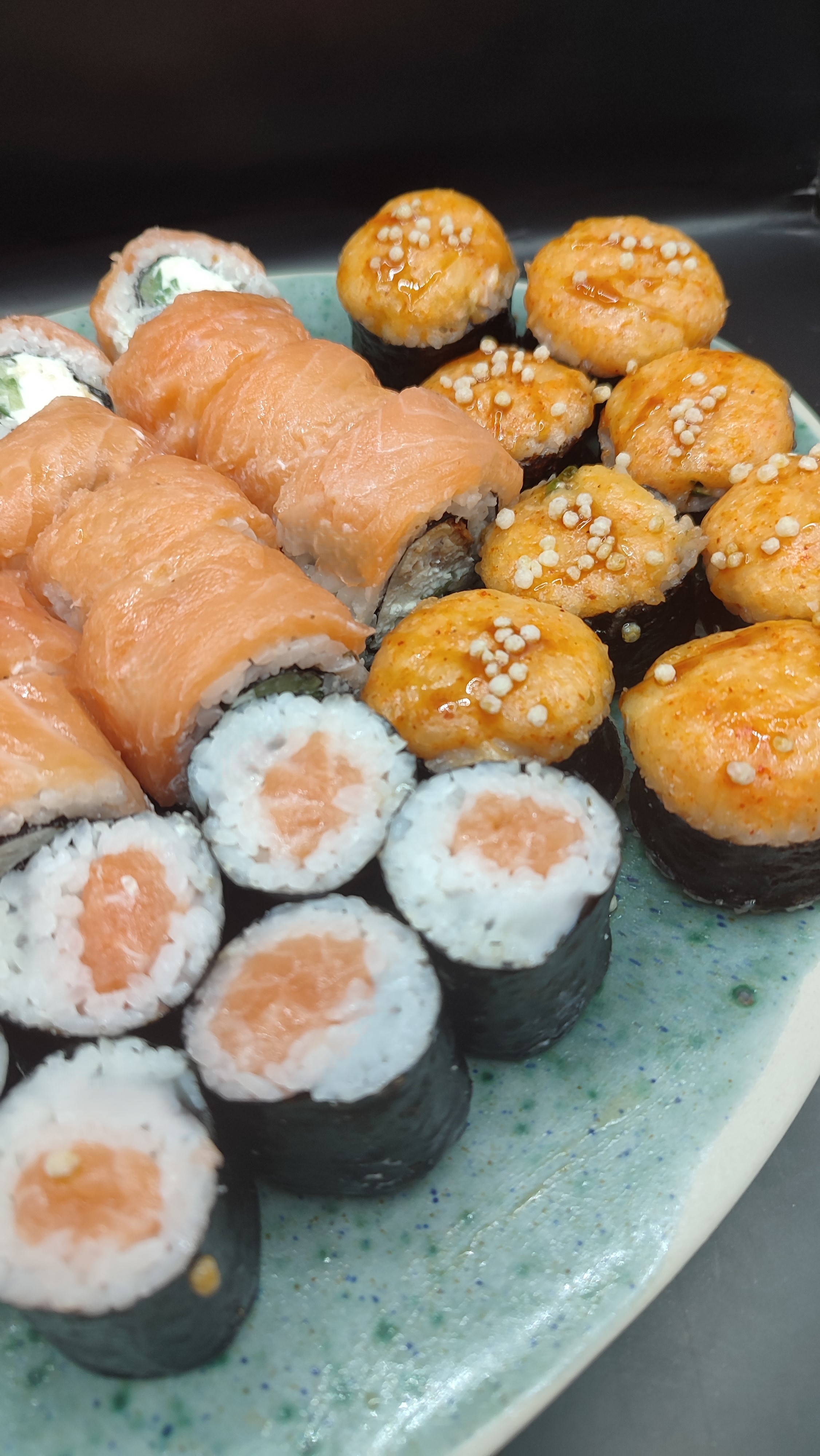 До чотирьох соусів на вибір.Рол комплектується імбирем, васабі та соєвим соусом.Вага 1000 грам